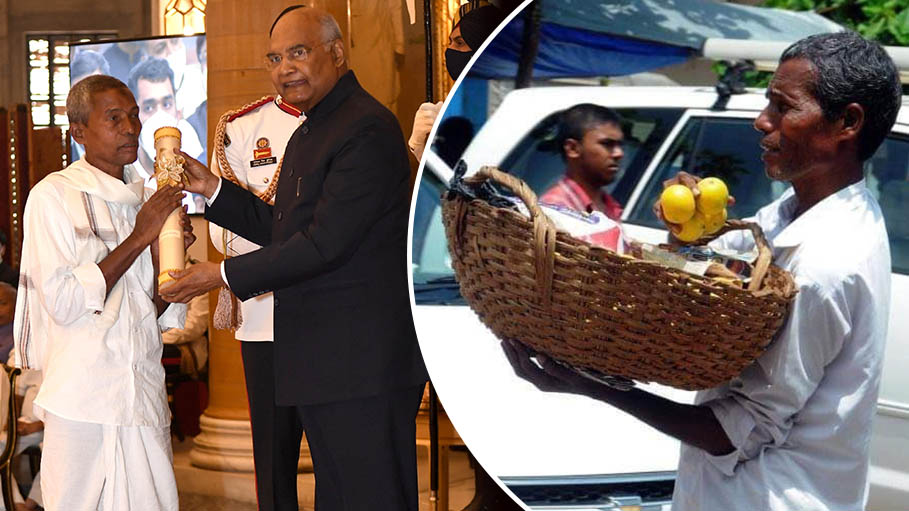 Harekala Hajabba a person who used to sell oranges received the Padma Shri civilian honor from the President of India Ram Nath Kovind. One day he was selling orange to a foreign couple who asked him the price in English. Harekala Hajabba an orange vendor from Mangalore built a primary school with his earnings of Rs 150 per day. The President of India Ramnath Kovind on Monday awarded Indias second-highest civilian award the Padma Shri Award to Harekala Hajabba an orange vendor from Karnatakas Mangaluru.